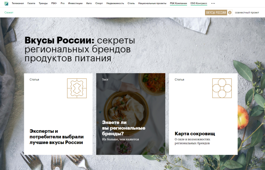 — Пометка «Совместный проект РБК и „Вкусов России“» с лого;
