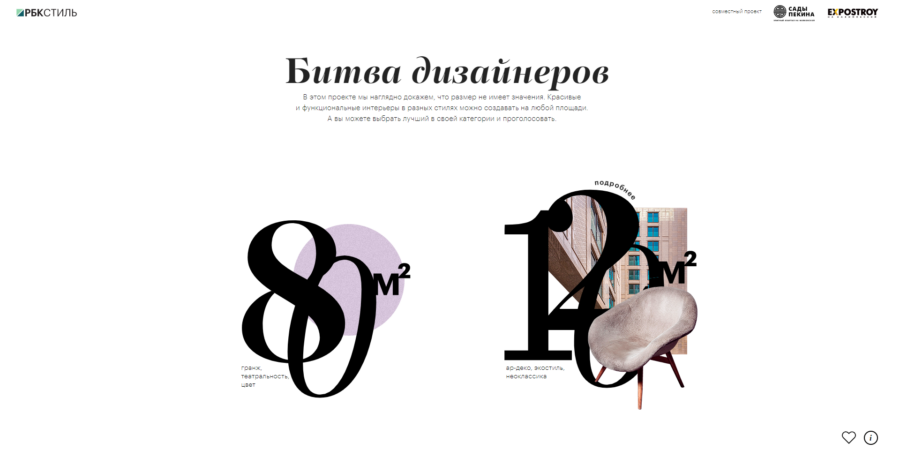 Проект реализован на отдельном домене сайта «РБК Стиль». Пользователи могут оценить дизайн-концепции, посмотреть используемые товары, подробнее ознакомиться с объектом элитной недвижимости и планировками его апартаментов.