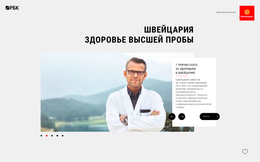 Доверие к медицине и выбор надежной системы здравоохранения — одна из самых щепетильных тем. В этом отношении клиники Швейцарии — гарант спокойствия и медицинского обслуживания высшего качества, которым доверяют самые статусные клиенты. Мы создали контентный проект, в котором показали, чем привлекательна швейцарская медицина.