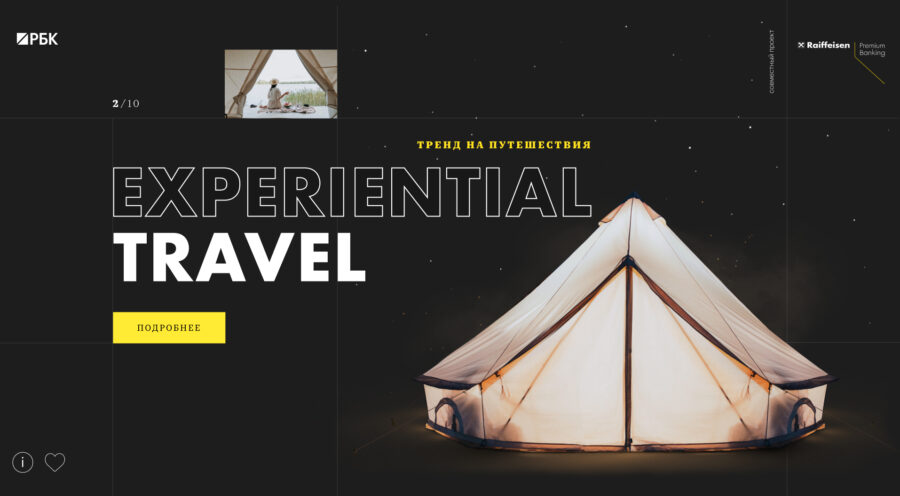 В проекте мы рассказали о 10 трендах в потреблении и о том, как на них можно заработать благодаря интеграции в свою жизнь услуг Premium Banking от «Райффайзенбанка».